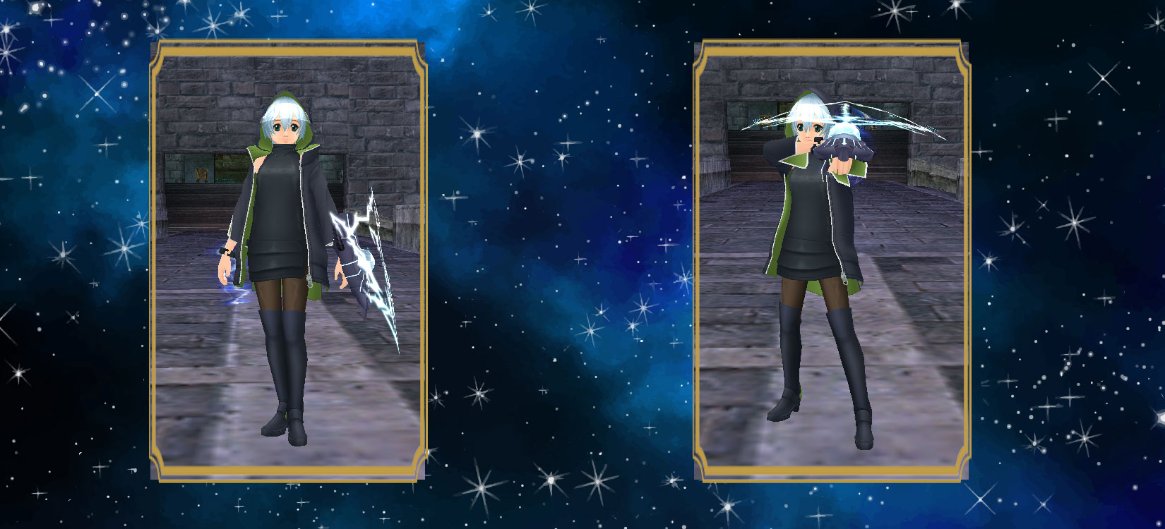 【 ライトニング アロー の説明 】 雷を纏ったガードを貫く光の矢を放つ技