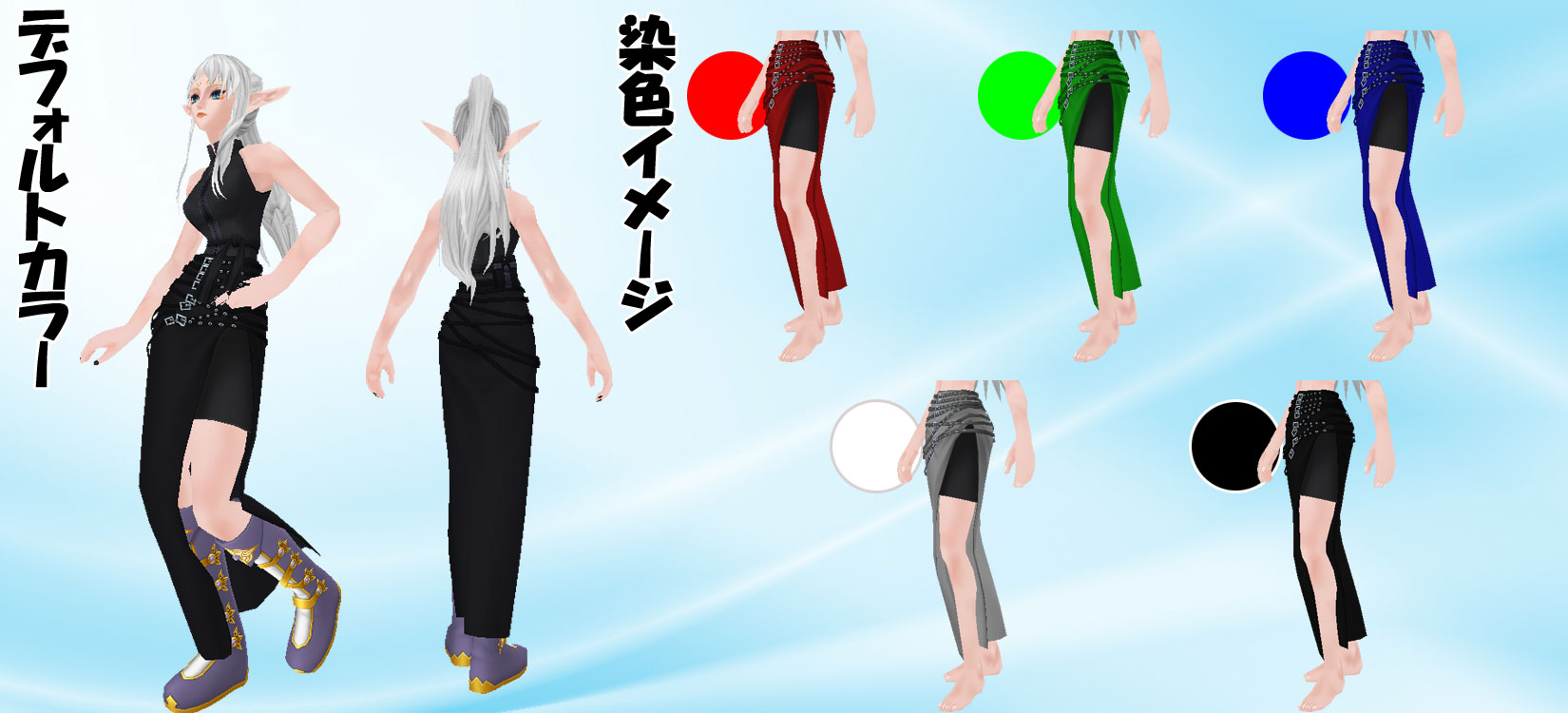 | ◇ロング スリット スカート NEW! | | 装備部位 | パンツ(防) | 必要スキル | 着こなし 31.0 | アーマークラス | 6.3 | 〈付加効果〉 移動アシスト機能:アシスト機能で移動速度とジャンプ力上昇し、キックの威力が上昇する ※WarAgeでは効果がない