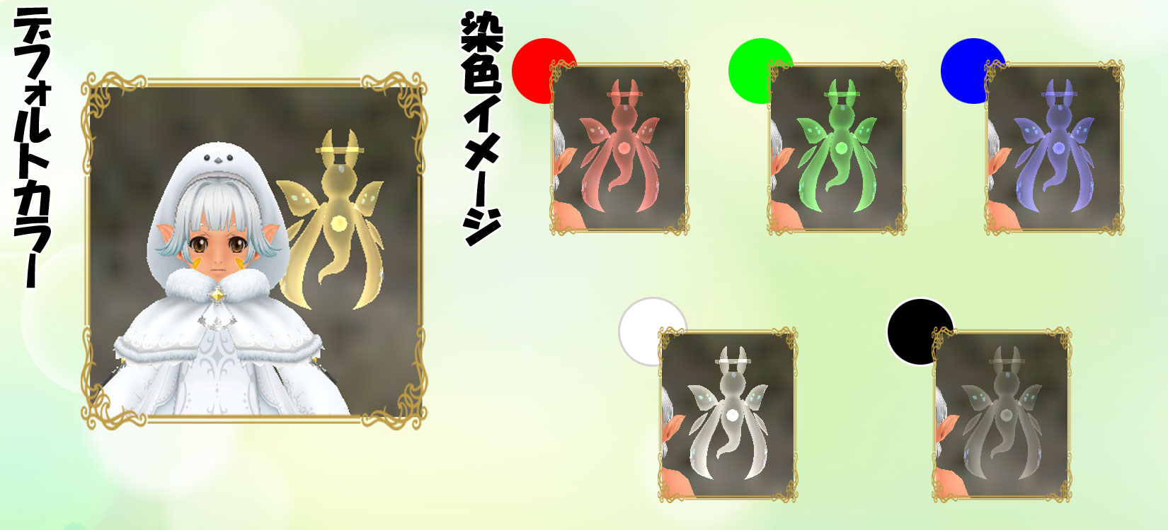 | ◇光の精霊 NEW! | | 装備部位 | 胸(装) | 必要スキル | 着こなし 1.0 | アーマークラス | 0.0 | 〈付加効果〉 光のエンハンス:攻撃力依存の物理ダメージが増加して、命中、回避、防御力、全属性耐性が10%上昇する ※WarAgeでは効果がない