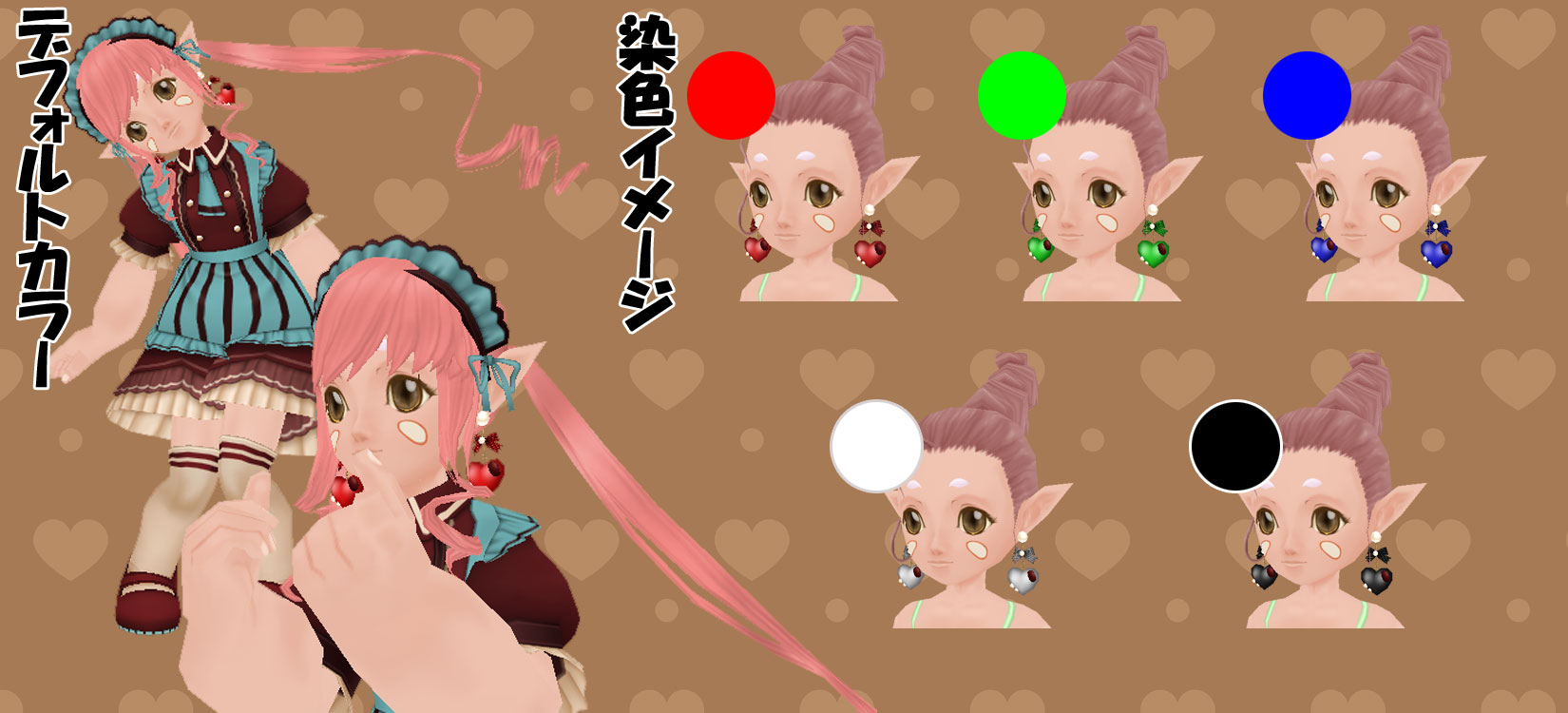 | ◇バレンタイン イヤリング NEW! | | 装備部位 | 耳(装) | 必要スキル | 着こなし 1.0 | アーマークラス | 0.0 | 〈付加効果〉 チョコっとラブ:最大HPが3%上昇して、物理と魔法のダメージがチョコっとだけアップする ※WarAgeでは効果がない